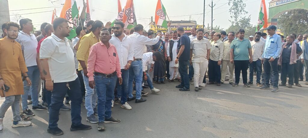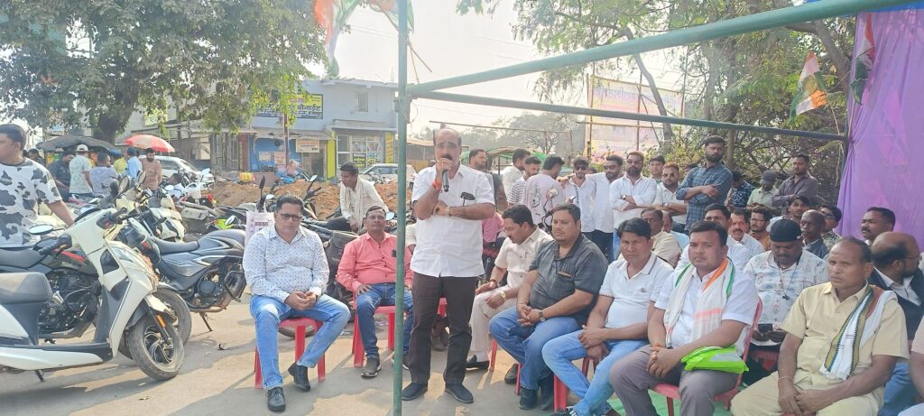आज खरसिया के रायगढ़ चौक मे खरसिया ब्लाक कांग्रेस कमेटी एवं शहर कांग्रेस ने मनरेगा बचाओ संग्राम के तहत एक दिवसीय धरना दिया धरना मे सैकड़ों की संख्या मे कांग्रेसियों ने विरोध प्रदर्शन किया